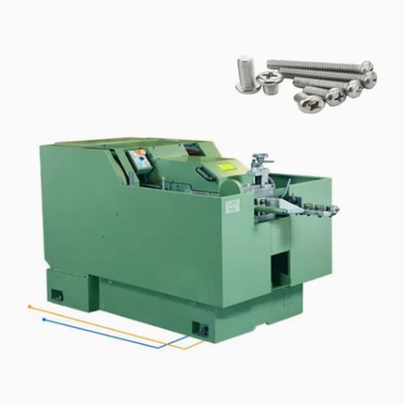 A máquina de fazer parafuso rola o fio nos parafusos. Endiliza o fio de aço, o corta por comprimento, forma a cabeça (cabeça de disco/cabeça hexagonal/cabeça de treliça) e rola a linha. O modelo básico requer um operador; O modelo automatizado pode operar com muito pouca supervisão.