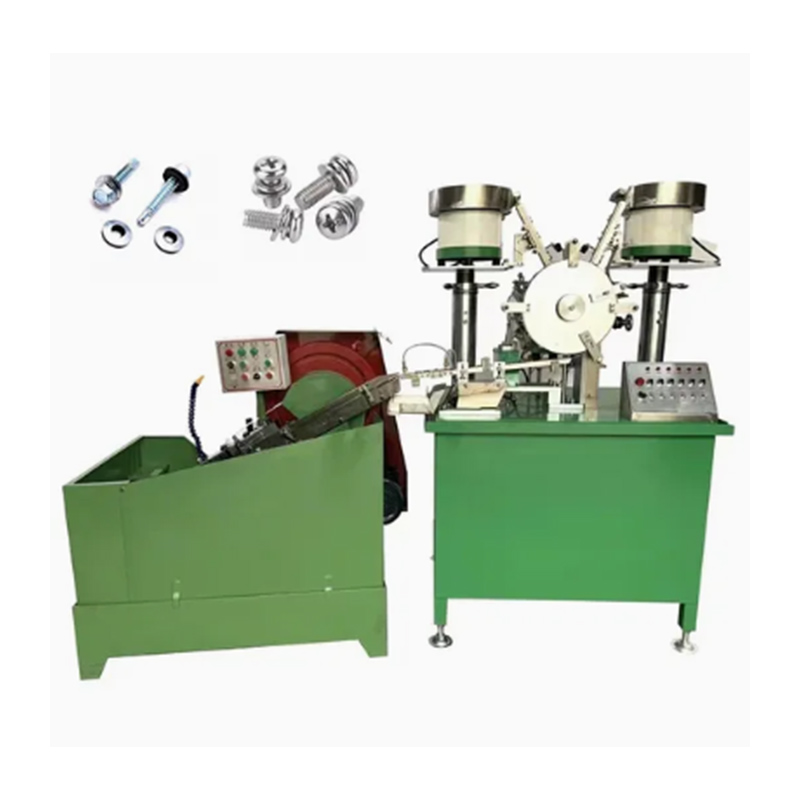 A máquina de montagem de arruela de parafuso autoperfurante tem capacidades de operação totalmente automáticas e pode completar os processos principais de alimentação precisa do parafuso, alimentação precisa da arruela e posicionamento da arruela sob a cabeça do parafuso em sequência, sem a necessidade de intervenção humana nas principais etapas de montagem. Os parafusos e arruelas são alimentados em duas tremonhas respectivamente e, em seguida, classificados e alinhados pela máquina e, finalmente, as arruelas são colocadas com precisão nos eixos dos parafusos. Finalmente, a máquina os entrega de maneira organizada.